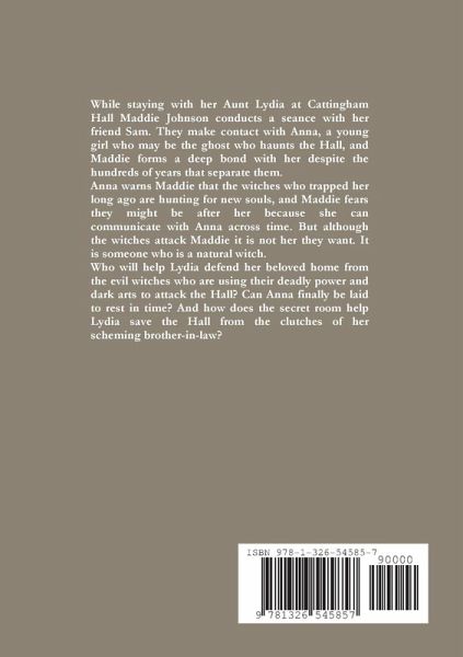 While staying with her Aunt Lydia at Cattingham Hall Maddie Johnson conducts a seance with her friend Sam. They make contact with Anna, a young girl who may be the ghost who haunts the Hall, and Maddie forms a deep bond with her despite the hundreds of years that separate them. Anna warns Maddie that the witches who trapped her long ago are hunting for new souls, and Maddie fears they might be after her because she can communicate with Anna across time. But although the witches attack Maddie it is not her they want. It is someone who is a natural witch. Who will help Lydia defend her beloved home from the evil witches who are using their deadly power and dark arts to attack the Hall? Can Anna finally be laid to rest in time? And how does the secret room help Lydia save the Hall from the clutches of her scheming brother-in-law?