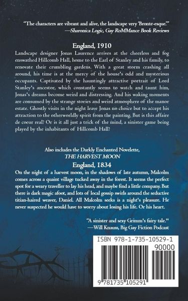 England, 1910 Landscape designer Jonas Laurence arrives at the cheerless and fog enswathed Hillcomb Hall, home to the Earl of Stanley and his family, to renovate their crumbling gardens. With a great storm crashing all around, his time is at the mercy of the house's odd and mysterious occupants. Captivated by the hauntingly attractive portrait of Lord Stanley's ancestor, which constantly seems to watch and taunt him, Jonas's dreams become weird and distressing. And his waking moments are consumed by the strange stories and weird atmosphere of the manor estate. Ghostly visits in the night leave Jonas no choice but to accept his attraction to the otherworldly spirit from the painting. But is this affaire de coeur real? Or is it all just a trick of the mind, a sinister game being played by the inhabitants of Hillcomb Hall? Also includes the Darkly Enchanted Novelette, THE HARVEST MOON England, 1834 On the night of a harvest moon, in the shadows of late autumn, Malcolm comes across a quaint village tucked away in the forest. It seems the perfect spot for a weary traveller to lay his head, and maybe find a little company. But there is dark magic afoot, and lots of local gossip swirls around the seductive titian-haired weaver, Daniel. All Malcolm seeks is a night's pleasure. He never suspected he would have to worry about losing his life. Or his heart.