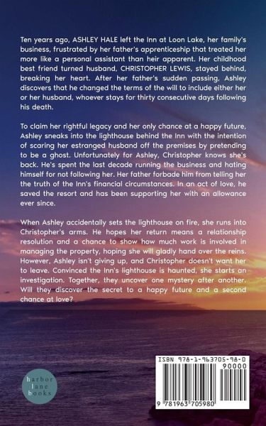 Ten years ago, ASHLEY HALE left the Inn at Loon Lake, her family's business, frustrated by her father's apprenticeship that treated her more like a personal assistant than heir apparent. Her childhood best friend turned husband, CHRISTOPHER LEWIS, stayed behind, breaking her heart. After her father's sudden passing, Ashley discovers that he changed the terms of the will to include either her or her husband, whoever stays for thirty consecutive days following his death. To claim her rightful legacy and her only chance at a happy future, Ashley sneaks into the lighthouse behind the Inn with the intention of scaring her estranged husband off the premises by pretending to be a ghost. Unfortunately for Ashley, Christopher knows she's back. He's spent the last decade running the business and hating himself for not following her. Her father forbade him from telling her the truth of the Inn's financial circumstances. In an act of love, he saved the resort and has been supporting her with an allowance ever since. When Ashley accidentally sets the lighthouse on fire, she runs into Christopher's arms. He hopes her return means a relationship resolution and a chance to show how much work is involved in managing the property, hoping she will gladly hand over the reins. However, Ashley isn't giving up, and Christopher doesn't want her to leave. Convinced the Inn's lighthouse is haunted, she starts an investigation. Together, they uncover one mystery after another. Will they discover the secret to a happy future and a second chance at love?
