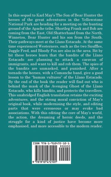 In this sequel to Karl May's The Son of Bear Hunter the heroes of the great adventures in the Yellowstone National Park are heading for a meeting on the hunting ground of the Apache tribe. Shortleg Frank and Bob are coming from the East, Old Shatterhand from the North, Winnetou, Bear Hunter and his son from the South. Their pathways meet at the Llano Estacado. At the same time experienced Westerners, such as the two Snuffles, Juggle Fred, and Bloody Fox are also in the area. Bit by bit these heroes learn that the bandits of the Llano Estacado are planning to attack a caravan of immigrants, and want to kill and rob them. The spies of the bandits are unmasked, and punished. After a tornado the heroes, with a Comanche band, give a good lesson to the "human vultures" of the Llano Estacado. By the end of the book the reader will find out who is behind the mask of the Avenging Ghost of the Llano Estacado, who kills bandits, and protects the travellers. This unabridged English translation retains the exciting adventures, and the strong moral conviction of May's original book, while modernising the style, and editing parts that were erroneous or may evoke bad associations. With this editing the core of May's world, the action, the dreaming of heroic deeds, and the struggle for a kind of justice have become more emphasised, and more accessible to the modern reader.
