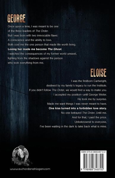 No one betrays The Order-except a Davis. George Once upon a time, I was meant to be one of the three leaders of The Order. But I was born with two irrevocable flaws: A conscience and the ability to love. Both cost me the one person that made life worth living. Losing her made me become The Ghost. I watched the consequences of my former world unravel, fighting from the shadows against the person who took everything from me. Eloise I was the firstborn Cartwright, destined by my family's legacy to run the Institute. If you didn't follow The Order, we would find a way to make you. I accepted my position-until George Weiler. He took me by surprise. Made me want things I was never meant to have. One kiss turned into a forbidden love story. No one betrayed The Order. Until me. And for that, I paid the price. Unbeknownst to everyone, I've been waiting in the dark to take back what is mine. **AUTHOR'S NOTE The Ghost is a dark, forbidden, second-chance novella with modern-day organized crime, Romeo-and-Juliet vibes and a prequel to The Dark Series and The Davis Order. This book is intended for MATURE (18+) readers. The Ghost is labeled dark due to the themes that may be considered TRIGGERS for some. Reader discretion is advised.