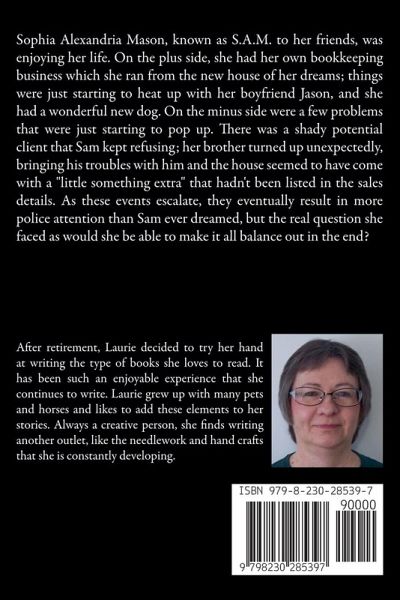 Sophia Alexandria Mason, known as S.A.M. to her friends, was enjoying her life. On the plus side, she had her own bookkeeping business which she ran from the new house of her dreams; things were just starting to heat up with her boyfriend Jason, and she had a wonderful new dog. On the minus side were a few problems that were just starting to pop up. There was a shady potential client that Sam kept refusing; her brother turned up unexpectedly, bringing his troubles with him and the house seemed to have come with a "little something extra" that hadn't been listed in the sales details. As these events escalate, they eventually result in more police attention than Sam ever dreamed, but the real question she faced as would she be able to make it all balance out in the end?