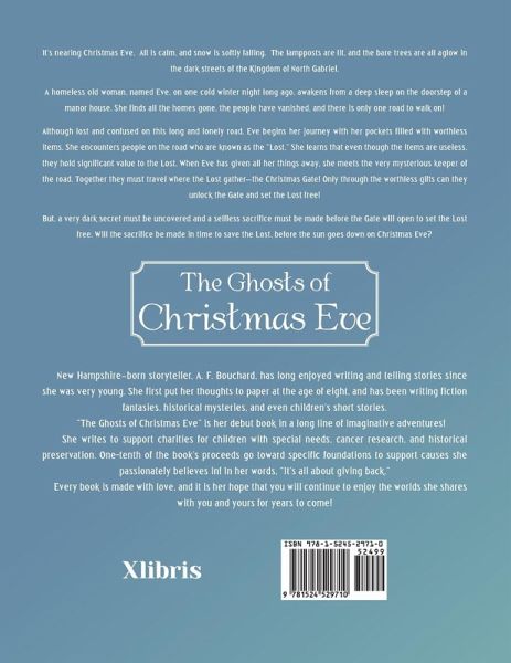 It's nearing Christmas Eve. All is calm, and snow is softly falling. The lampposts are lit, and the bare trees are all aglow in the dark streets of the Kingdom of North Gabriel. A homeless old woman, named Eve, on one cold winter night long ago, awakens from a deep sleep on the doorstep of a manor house. She finds all the homes gone, the people have vanished, and there is only one road to walk on! Although lost and confused on this long and lonely road, Eve begins her journey with her pockets filled with worthless items. She encounters people on the road who are known as the "Lost." She learns that even though the items are useless, they hold significant value to the Lost. When Eve has given all her things away, she meets the very mysterious keeper of the road. Together they must travel where the Lost gather-the Christmas Gate! Only through the worthless gifts can they unlock the Gate and set the Lost free! But, a very dark secret must be uncovered and a selfless sacrifice must be made before the Gate will open to set the Lost free. Will the sacrifice be made in time to save the Lost, before the sun goes down on Christmas Eve?