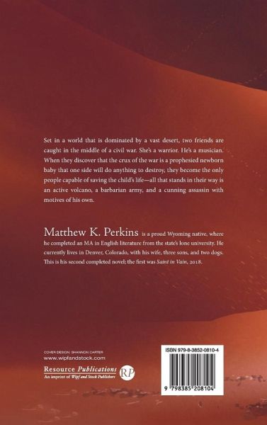 Set in a world that is dominated by a vast desert, two friends are caught in the middle of a civil war. She's a warrior. He's a musician. When they discover that the crux of the war is a prophesied newborn baby that one side will do anything to destroy, they become the only people capable of saving the child's life--all that stands in their way is an active volcano, a barbarian army, and a cunning assassin with motives of his own.