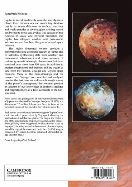 Jupiter is an extraordinarily colourful and dynamic planet. Over minutes, one can watch tiny shadows cast by its moons slide over its surface; over days and weeks parades of diverse, giant swirling storms can be seen to move and evolve. It is because of this richness of visual and physical properties that Jupiter has intrigued amateur and professional astronomers and has been the goal of several space missions. This highly illustrated volume provides a comprehensive and accessible account of Jupiter and its satellites. It reviews systematic telescopic observations that have stretched over more than a hundred years, in addition to modern observations and theories, and the wealth of data from the Pioneer, Voyager and Ulysses space missions. As well as a thorough survey of the planet's atmosphere, this volume presents an up-to-date account of our present knowledge of Jupiter's satellites and magnetosphere, at a level accessible to the non-specialist. This volume provides the definitive account of Jupiter for advanced amateur astronomers, professional astronomers and planetary scientists.