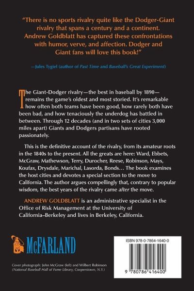 The Giant-Dodger rivalry was considered the best in baseball by 1890 and remains the game's oldest and most storied rivalry today. It's remarkable how often both teams have been good, how rarely they've both been bad, and how tenaciously the underdog has battled in between. Through 12 decades (and in two sets of cities 3,000 miles apart) Giant and Dodger partisans have rooted so passionately against each other that, just as during the Civil War, conflicting loyalties have divided neighbors and even families. This is the definitive account of the rivalry, from its roots in amateur contests between New York and Brooklyn teams in the 1840s to its present incarnation in California's world class cities. All the greats are here: Ward, Ebbets, McGraw, Mathewson, Terry, Durocher, Reese, Robinson, Mays, Koufax, Drysdale, Marichal, Lasorda, Bonds. The book also examines the cities that have hosted the rivalry and devotes a special section to the move to California. The author argues compellingly that, contrary to popular wisdom, the rivalry's best years came after the move.