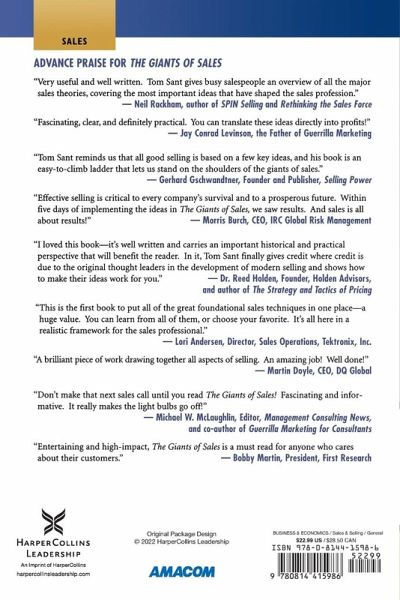 This invaluable guide introduces you to the techniques developed by four legendary sales giants, and offers concrete examples of how they still work in the 21st century. Sales theories come and go, but nothing beats learning from the original masters. The Giants of Sales reveals how: In his quest to sell a brand new product known as the cash register, John Henry Patterson came up with a repeatable sales process tailor-made for his own sales force Dale Carnegie taught people how to win friends and influence customers with powerful methods that still work Joe Girard, listed by Guinness as the world's greatest salesman, didn't just sell cars, he sold relationships...and developed a successful referral business Elmer Wheeler discovered fundamental truths about persuasion by testing thousands of sales pitches on millions of people, and achieved great success in the middle of the Great Depression Part history and part how-to, The Giants of Sales gives you practical, real-world techniques based on the time-tested wisdom of true sales masters.