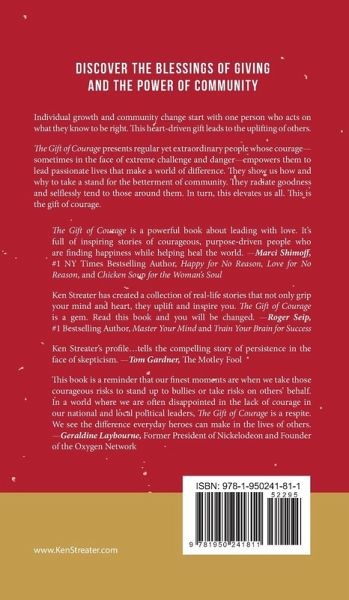 Individual growth and community change start with one person who acts on what they know to be right. This heart-driven gift leads to the uplifting of others. The Gift of Courage presents regular yet extraordinary people whose courage-sometimes in the face of extreme challenge and danger-empowers them to lead passionate lives that make a world of difference. They show us how and why to take a stand for the betterment of community. They radiate goodness and selflessly tend to those around them. In turn, this elevates us all. This is the gift of courage.