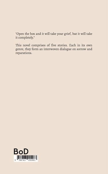 "Open the box and it will take your grief, but it will take it completely."This novel comprises of five stories. Each in its own genre, they form an interwoven dialogue on sorrow and reparations.