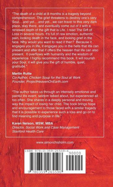 The Gift of Loss is the story of a child whose very life was nothing short of a miracle, and whose death changed his family in profound and unexpected ways. "The death of a child at 8 months is a tragedy beyond comprehension. The grief threatens to destroy one's very Soul....and yet....and yet...we can travel to this very dark place, stay there, and eventually come out of it with a renewed depth of the gift that is Life. I read The Gift of Loss in several hours. It's full of raw emotion, authentic pain, looking death in the face, and looking grief in the face. Why would you want to read it then? Because it engages you in life, it engages you in the hells that life can present and after that if offers the heaven that life can also present. It overflows with humanity and the wisdom of experience. I highly recommend this book. It will nourish your Soul, it will give you the gift of humble, quiet, gratitude." Martin Rutte Co-Author, Chicken Soup for the Soul at Work Founder, ProjectHeavenOnEarth.com