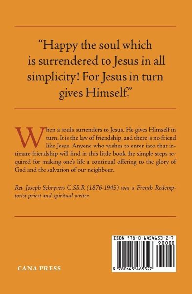 When a souls surrenders to Jesus, He gives Himself in turn. It is the law of friendship, and there is no friend like Jesus. Anyone who wishes to enter into that intimate friendship will find in this little book the simple steps required for making one's life a continual offering to the glory of God and the salvation of our neighbour.