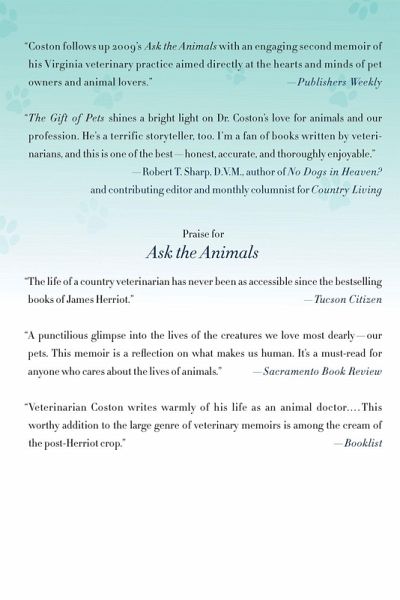 Bruce R. Coston's first book, Ask the Animals, earned him high praise for being another James Herriot. Now, in his delightful second memoir, Coston shares more rich stories about his animal patients and the clients who make veterinary practice so fulfilling. In this humorous, poignant, and enthralling collection, Coston explores what it is about the interaction with our pets that provides such profound companionship, and how a love for animals helps us to be more fully human. This ability to enrich and fulfill us is the Gift of pets. Coston's characters, both the people and the animals, will engage you from the first page. You'll meet Mr. Johnston, the linguist, and his Mountain of Love; Rachel, the office prankster; Coston's "girlfriend," Megan; and Mischief, the only patient Coston has ever had that helped to pay for her own surgery. You'll learn what a "sugar glider" is and how to give one mouth-to-mouth resuscitation. You'll marvel at Lisa, Coston's first veterinary technician, and the courage that the Gift of pets gave her to reinvent herself and rekindle the dreams she thought she had squandered. The Gift of Pets celebrates what it's like to be truly blessed with a deep love and concern for the pets with which we surround ourselves. Coston invites all animal lovers to rejoice in that Gift with him in this inspiring book of true stories.
