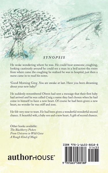 SYNOPSIS He woke wondering where he was. He could hear someone coughing, looking cautiously around he could see a man in a bed across the room from where came the coughing he realised he was in hospital, just then a nurse came in to read his notes. 'Good Morning Greg .You are awake at last. Have you been dreaming about your new baby?' He suddenly remembered Olwen had sent a message that their first baby had arrived and he was called Craig a name they had chosen when he had come in himself to have a new heart. Of course he had been given a new heart, no wonder he was stiff and sore. He felt very near to tears. He had been given a wonderful wonderful second chance. A beautiful wife, a baby son and a new heart. A gift of second chances. Other books available: The Blackberry Pickers From Unicorns to Wild Geese A Rough Kind of Magic