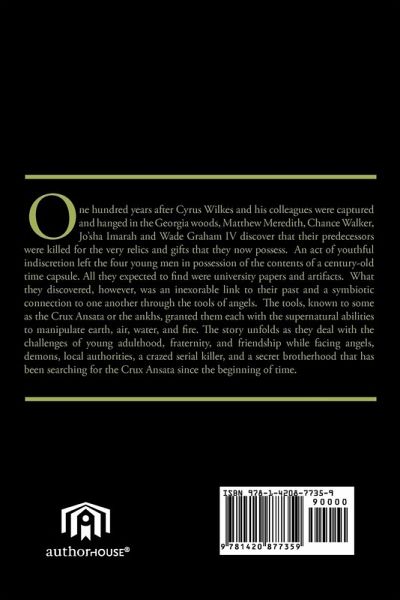 One hundred years after Cyrus Wilkes and his colleagues were captured and hanged in the Georgia woods, Matthew Meredith, Chance Walker, Jo'sha Imarah and Wade Graham IV discover that their predecessors were killed for the very relics and gifts that they now possess. An act of youthful indiscretion left the four young men in possession of the contents of a century-old time capsule. All they expected to find were university papers and artifacts. What they discovered, however, was an inexorable link to their past and a symbiotic connection to one another through the tools of angels. The tools, known to some as the Crux Ansata or the ankhs, granted them each with the supernatural abilities to manipulate earth, air, water, and fire. The story unfolds as they deal with the challenges of young adulthood, fraternity, and friendship while facing angels, demons, local authorities, a crazed serial killer, and a secret brotherhood that has been searching for the Crux Ansata since the beginning of time.