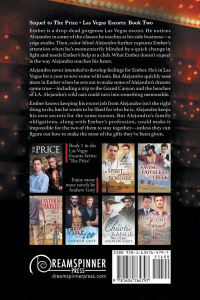 Sequel to The PriceLas Vegas Escorts: Book Two Ember is a drop-dead gorgeous Las Vegas escort. He notices Alejandro in some of the classes he teaches at his side business-a yoga studio. Then, color-blind Alejandro further captures Ember's attention when he's momentarily blinded by a quick change in light and needs Ember's help at a club. What Ember doesn't expect is the way Alejandro touches his heart. Alejandro never intended to develop feelings for Ember. He's in Las Vegas for a year to sow some wild oats. But Alejandro quickly sees more in Ember when he sets out to make some of Alejandro's dreams come true-including a trip to the Grand Canyon and the beaches of LA. Alejandro's wild oats could turn into something memorable. Ember knows keeping his escort job from Alejandro isn't the right thing to do, but he wants to be liked for who he is. Alejandro keeps his own secrets for the same reason. But Alejandro's family obligations, along with Ember's profession, could make it impossible for the two of them to stay together-unless they can figure out how to make the most of the gifts they've been given.