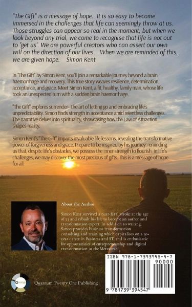 Amid life's chaos, the most profound discoveries often lie hidden. "The Gift" is more than a tale of a brain haemorrhage and the path to recovery. It is an exploration of resilience, humility, perseverance, surrender, determination, courage, acceptance, forgiveness, and grace. Enter the author, Simon Kent, a fit, healthy, family man whose life was a whirlwind of ambition and dreams. Yet, with a sudden brain haemorrhage, the stage was silenced, and a new journey began, one marked by unexpected challenges and resilience. "The Gift" is not just a story of overcoming adversity; it's a deep dive into resilience. Through the author's journey, we witness the power of determination, the will to rise from the depths of despair, and the belief that healing is possible even in the face of daunting odds. Beneath it all, "The Gift" is about surrender. It's about letting go of control and embracing the unpredictability of life. In the face of relentless challenges, our hero finds strength in surrendering to the present moment, learning that courage often lies in acceptance. As the story unfolds, forgiveness and grace come to the forefront. It is a testament to the human heart's capacity to forgive, release resentment, and find peace amidst adversity. "The Gift" asks us to shift our perspective-a reminder that life's most precious moments often occur in moments of reflection. The rapid pace of modern life often blinds us to the beauty of simplicity, and it's only when we're forced to slow down that we truly see the world anew. Most intriguingly, this narrative delves into the spiritual realm-a profound awakening, or perhaps a reawakening, as the author explores how the Law of Attraction played a role in their recovery and transformation. They discover that thoughts and intentions have the power to shape reality, illuminating their path to healing and renewal. But above all, "The Gift" is a repository of lessons. It teaches us that resilience can be our guiding light in the darkest of times, that surrender is not defeat but a path to inner peace, that forgiveness and grace can heal wounds we thought were incurable, and that a shift in perspective can lead to profound happiness. Ultimately, this is a story of transformation-from a life driven by ambition to one enriched by profound meaning. It reminds us that even in the face of the unexpected, beauty can be found, and the journey, no matter how arduous, is a priceless gift. "The Gift" is a moving and uplifting tale that will resonate deeply with anyone who has confronted adversity and emerged profoundly changed. It is an invitation to embrace life's challenges as potential gifts and to uncover the profound beauty that can emerge when we pause, reflect, and rediscover ourselves.