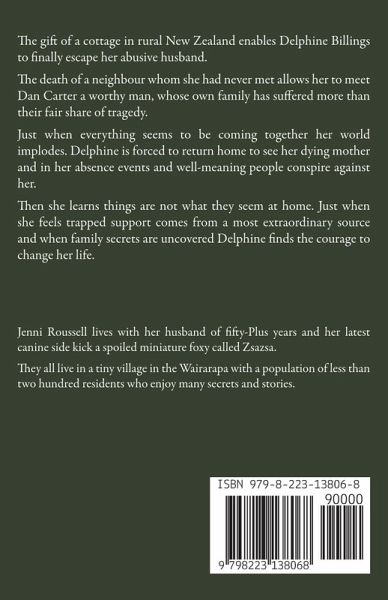The gift of a cottage in rural New Zealand enables Delphine Billings to finally escape her abusive husband. The death of a neighbour whom she had never met allows her to meet Dan Carter a worthy man, whose own family has suffered more than their fair share of tragedy. Just when everything seems to be coming together her world implodes. Delphine is forced to return home to see her dying mother and in her absence events and well-meaning people conspire against her. Then she learns things are not what they seem at home. Just when she feels trapped support comes from a most extraordinary source and when family secrets are uncovered Delphine finds the courage to change her life.