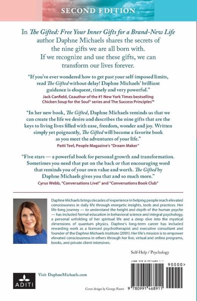 Would you like a life filled with harmony, ease and powerful connections? Do you know you have nine gifts inside you that can help you live the life you are meant to have? Learn how to use your gifts and transform your life forever for the better. The Gifted: Free Your Inner Gifts for a Brand-New Life is an inspirational, groundbreaking book from leading expert in human potential, Daphne Michaels. Describing and celebrating the nine gifts we are all born with, Michaels teaches readers how to recognize each gift and use it on their journey to become who we are meant to be. Michaels shows us that the first three gifts we must recognize are Awareness, Potential and Stillness. These three allow us to identify and use with real life-changing power the remaining six: Disharmony, Harmony, Ease, Clarity, Freedom and Engagement. By approaching these nine gifts with real-world metaphors, Michaels answers common questions about personal transformation -- such as how it works and what kind of commitment it takes to reach a life of authentic happiness. Even Disharmony, Michaels explains, does not need to rule us. It is ours to use in positive ways as we discover the real purpose of Harmony in our lives. The final gift, Engagement, allows us to use all of the gifts with a joy and power we never imagined possible.