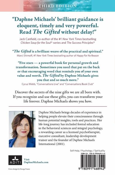It's time to stop waiting, hoping and wishing that your life would change, and take control of your destiny. Right now, you possess nine powerful gifts that can help you live the life you were meant to live, if you know how to identify and harness them today. Inside this inspirational, groundbreaking book, you'll learn how to use your gifts and transform your life in a lasting way. Written by Daphne Michaels, a powerful voice of higher consciousness for today's world, this book will awaken you to powerful insights and a more simplified model for personal evolution than has ever existed before. Discover the nine gifts within you and how to use them skillfully on your own journey to become who you were meant to be. Describing and celebrating the nine gifts we are all born with, Michaels teaches readers how to recognize each gift and use it on their journey to become who we are meant to be. Michaels shows us that the first three gifts we must recognize are Awareness, Potential and Stillness. These three allow us to identify and use with real life-changing power the remaining six: Disharmony, Harmony, Ease, Clarity, Freedom and Engagement. By approaching these nine gifts with real-world metaphors, Michaels answers common questions about personal transformation -- such as how it works and what kind of commitment it takes to reach a life of authentic happiness. Even Disharmony, Michaels explains, does not need to rule us. It is ours to use in positive ways as we discover the real purpose of Harmony in our lives. The final gift, Engagement, allows us to use all of the gifts with a joy and power we never imagined possible.