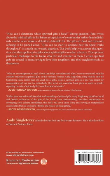 ""How can I determine which spiritual gifts I have?"" Wrong question! Paul writes about the spiritual gifts in his letters as capacities of communities rather than individuals, and he never makes a definitive, definable list. The gifts are fluid and dynamic, refusing to be pinned down. ""How can we start to describe how the Spirit works through us?"" is a much more useful question. This book helps you answer that question, and then applies principles about spiritual gifts to urban ministry. Cities present particular challenges to the teams who live and minister in them. Certain spiritual gifts are crucial to teams trying to love their neighbors, and their neighborhoods, as themselves.