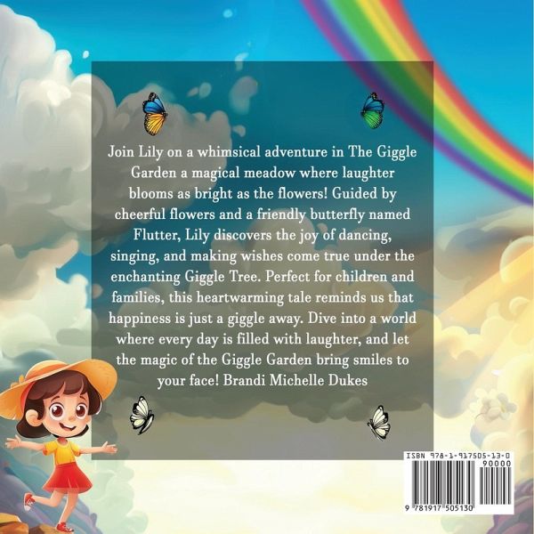 Join Lily on a whimsical adventure in The Giggle Garden a magical meadow where laughter blooms as bright as the flowers! Guided by cheerful flowers and a friendly butterfly named Flutter, Lily discovers the joy of dancing, singing, and making wishes come true under the enchanting Giggle Tree. Perfect for children and families, this heartwarming tale reminds us that happiness is just a giggle away. Dive into a world where every day is filled with laughter, and let the magic of the Giggle Garden bring smiles to your face! Brandi Michelle Dukes