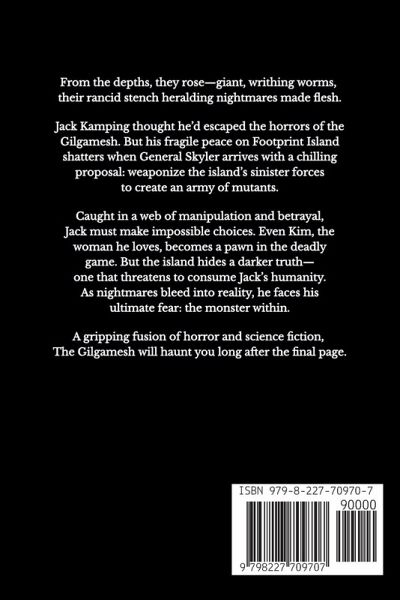 From the depths, they rose-giant, writhing worms, their rancid stench heralding nightmares made flesh. Jack Kamping thought he'd escaped the horrors of the Gilgamesh. But his fragile peace on Footprint Island shatters when General Skyler arrives with a chilling proposal: weaponize the island's sinister forces to create an army of mutants. Caught in a web of manipulation and betrayal, Jack must make impossible choices. Even Kim, the woman he loves, becomes a pawn in the deadly game. But the island hides a darker truth-one that threatens to consume Jack's humanity. As nightmares bleed into reality, he faces his ultimate fear: the monster within. A gripping fusion of horror and science fiction, The Gilgamesh will haunt you long after the final page.
