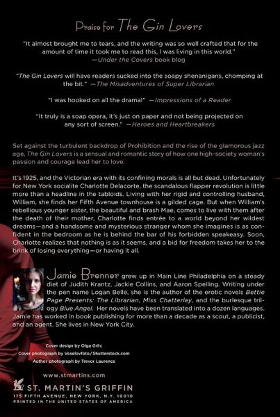 Set against the turbulent and glamorous backdrop of Prohibition and the rise of the jazz age, Jamie Brenner's The Gin Lovers was first published as a six-part e-serial. Now this sensual and romantic story of how one high society woman's passion and courage lead her to love is available for the first time ever as a complete book. It's 1925, and the Victorian era with its confining morals is all but dead. Unfortunately, for New York socialite Charlotte Delacorte, the scandalous flapper revolution is little more than a headline in the tabloids. Living with her rigid and controlling husband William, her Fifth Avenue townhouse is a gilded cage. But when William's rebellious younger sister, the beautiful and brash Mae, comes to live with them after the death of their mother, Charlotte finds entrée to a world beyond her wildest dreams - and a handsome and mysterious stranger whom she imagines is as confident in the bedroom as he is behind the bar of his forbidden speakeasy.