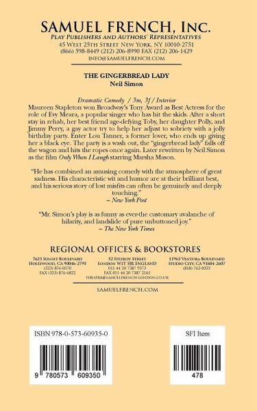 Genre: Dramatic Comedy Characters: 3 males, 3 females Scenery: Interior Maureen Stapleton won Broadway's Tony Award as Best Actress for the role of Evy Meara, a popular singer who has hit the skids. After a short stay in rehab, her best friend age-defying Toby, her daughter Polly, and Jimmy Perry, a gay actor try to help her adjust to sobriety with a jolly birthday party. Enter Lou Tanner, a former lover, who ends up giving her a black eye. The party is a wash out, the "gingerb