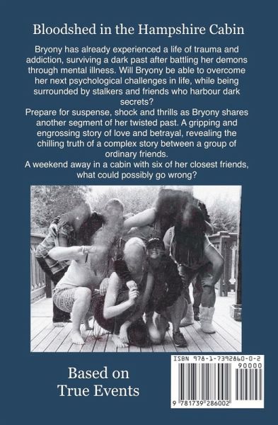 Bryony has already experienced a life of trauma and addiction, surviving a dark past after battling her demons through mental illness. Will Bryony be able to overcome her next psychological challenged in life, while being surrounded by stalkers and friends who harbour dark secrets? Prepare for suspense, shock and thrills as Bryony shares another segment of her twisted past. A gripping and engrossing story of love and betrayal, revealing the chilling truth of a complex story between a group of ordinary friends. A weekend away in a cabin with six of her closest friends, what could possibly go wrong?
