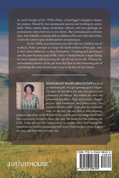 In rural Georgia of the 1950s, Haley, a bootlegger?s daughter, begins her journey. Raised by two uneducated parents and working in cotton fields, Haley endures abuse, alcoholism, ridicule, and most glaringly, an environment where little love is ever shown. She is introduced to a former slave, Aunt Matilda, a woman with no children of her own who raises Haley to love the Lord in spite of their present circumstances. In the 1960s, as a seventeen-year-old with two children out of wedlock, Haley attempts to escape the harsh realities of her past, only to have them follow her to New Hampshire. Drinking and partying to ease the pain become a way of life. Haley is finally forced to begin facing her inner demons and perceiving the call of God on her life. Witness the extraordinary journey of the girl from Rat Row in this harrowing tale of overcoming the worst of one?s past to get to the best of one?s future.