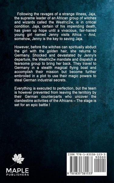 Following the ravages of a strange illness, Jaja, the supreme leader of an African group of witches and wizards called the Weafric2w, is in critical condition. Jaja, certain of his impending death, has given up hope until a vivacious, fair-haired young girl named Jenny visits Africa - And, somehow, Jenny is the key to saving Jaja. However, before the witches can spiritually abduct the blonde, she returns to Germany. Shocked and devastated by Jenny's departure, the Weafric2w mandate and dispatch a fearsome group to bring her back. They travel to Germany in a stealth magical flying boat and accomplish their mission but become further embroiled in a plot to use their magic powers to steal German industrial secrets. Everything is executed to perfection. However, their plans to leave the territory are thwarted by the German witches who discovered the covert activities of the Africans - Their intervention sets the stage for an epic, fight-to-the-finish battle. The adventure in Germany reaches a thrilling climax as a dramatic denouement decides the outcome of this dynamic story.