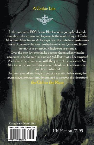 In the autumn of 1900, Adam Blackwood, a young bank clerk, travels to take up new employment in the small village of Cedar Moor, near Manchester. As he steps from the train he experiences a sense of unease as sees the shadow of a small, cloaked figure moving in the stairwell which exits the station. Over the next few months, he becomes haunted by what he perceives to be the spirit of a young girl. But what is her purpose? And what is her connection with the grave of the unknown Sam Blackwood, whose headstone records his date of death as over a year into the future? As those around him begin to doubt his sanity, Adam struggles against a gathering storm, determined to discover the identity of the Girl on the Moor.