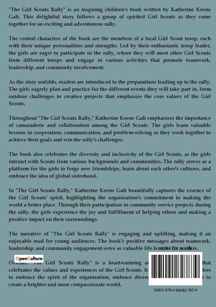 "The Girl Scouts Rally; or, Rosanna Wins" by Katherine Keene Galt is a touching narrative centered around the lives of three young girls, Rosanna, Helen, and Elise, who are members of the Girl Scouts. Set in Louisville, the story begins with the girls contemplating ways to help Gwenny, a young girl suffering from a severe spinal condition that requires an expensive operation. Despite the financial constraints faced by their families, the girls are determined to raise the necessary funds themselves. Rosanna, inspired by the idea of a benefit performance, decides to write a play about the Girl Scouts, hoping it will generate enough money to cover Gwenny's medical expenses. The narrative unfolds with Rosanna diligently working on her play, while her friends support her by practicing songs and dances to be included in the performance. The play becomes a collaborative effort, with the involvement of their Girl Scout Captain, Miss Hooker, and Rosanna's Uncle Robert, who offers to help with the logistics of staging the play. The story highlights the themes of friendship, determination, and the power of community as the girls rally together to achieve their goal. As the play takes shape, the girls face various challenges, including finding a suitable venue and ensuring the play's success. Their efforts are further complicated by an encounter with Mr. Harriman, a grumpy old man who inadvertently becomes a part of their journey. Through their perseverance and teamwork, the girls learn valuable lessons about compassion and the impact of their actions on others.