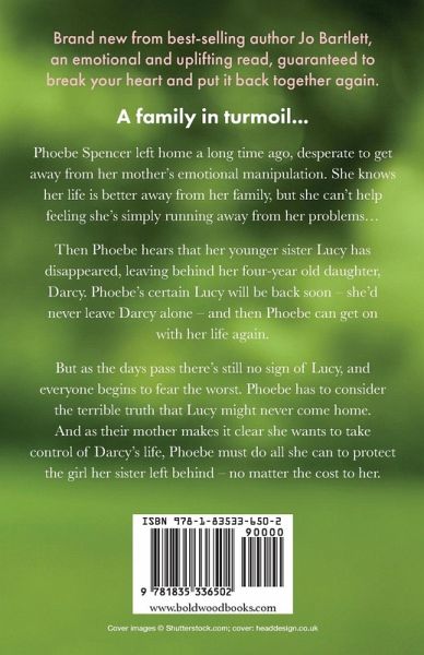 A family in turmoil... Phoebe Spencer left home a long time ago, desperate to get away from her mother's emotional manipulation. She knows her life is better away from her family, but she can't help feeling she's simply running away from her problems... Then Phoebe hears that her younger sister Lucy has disappeared, leaving behind her four-year old daughter, Darcy. Phoebe's certain Lucy will be back soon - she'd never leave Darcy alone - and then Phoebe can get on with her life again. But as the days pass there's still no sign of Lucy, and everyone begins to fear the worst. Phoebe has to consider the terrible truth that Lucy might never come home. And as their mother makes it clear she wants to take control of Darcy's life, Phoebe must do all she can to protect the girl her sister left behind - no matter the cost to her. Praise for Jo Bartlett 'Stunning setting, wonderful characters, and oozing with warmth. A triumph from Jo Bartlett.'** Jessica Redland** 'Perfectly written and set in the beating heart of a community, this story is a wonderful slice of Cornish escapism.' Helen J Rolfe 'I was drawn in from the first word, I've laughed and cried, what a really lovely story' Reader Review 'I would highly recommend this book for a bit of fantastic escapism and love conquering all.' Reader Review