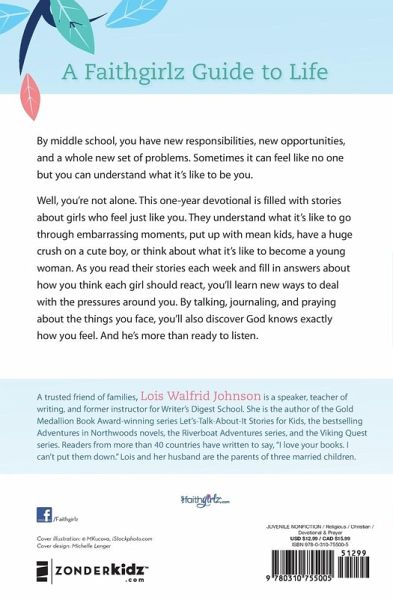 As you grow up, a lot of new, sometimes strange, things start to happen, and it can be overwhelming. You have new responsibilities, new opportunities, and a whole new set of problems, and sometimes it can feel like no one but you can understand what it's like to be you. You're not alone. This one-year devotional is filled with stories about girls who feel just like you. As you read their stories each week and fill in questions about how you think each girl should react, you'll learn new ways to deal with the pressures around you, embrace the opportunities God has given you, and make choices that give you the opportunity to dream. Through prayer and journal exercises, you'll also discover there is someone out there who knows exactly how you feel. And he's more than ready to listen.