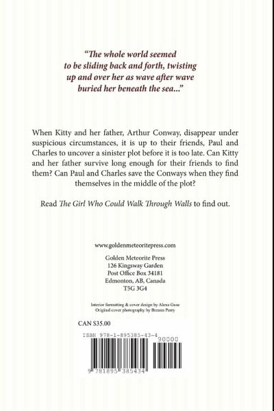 When Kitty and her father, Arthur Conway, disappear under suspicious circumstances, it is up to their friends, Paul and Charles to uncover a sinister plot before it is too late. Can Kitty and her father survive long enough for their friends to find them? Can Paul and Charles save the Conways when they find themselves in the middle of the plot? Read The Girl Who Could Walk Through Walls to find out.
