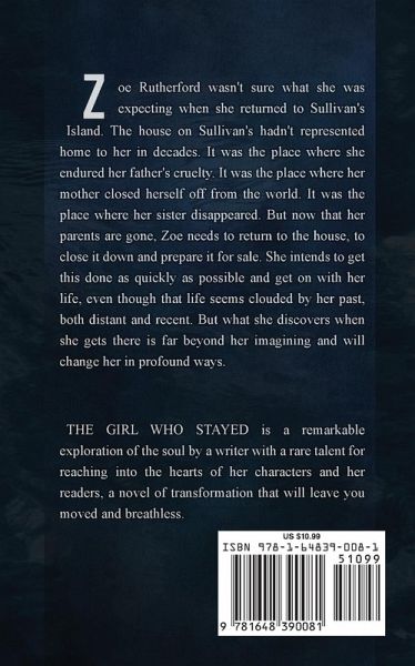 "A beautifully written, page-turning novel packed with emotion." - #1 New York Times bestselling author Barbara FreethyZoe Rutherford wasn't sure what she was expecting when she returned to Sullivan's Island. The house on Sullivan's hadn't represented home to her in decades. It was the place where she endured her father's cruelty. It was the place where her mother closed herself off from the world. It was the place where her sister disappeared. But now that her parents are gone, Zoe needs to return to the house, to close it down and prepare it for sale. She intends to get this done as quickly as possible and get on with her life, even though that life seems clouded by her past, both distant and recent. But what she discovers when she gets there is far beyond her imagining and will change her in profound ways.THE GIRL WHO STAYED is a remarkable exploration of the soul by a writer with a rare talent for reaching into the hearts of her characters and her readers, a novel of transformation that will leave you moved and breathless.