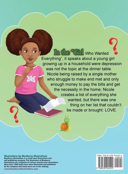 Nicole at the age of 10 years old was exposed to more things than she could imagine. Living in a single parent home, with a mother suffering from depression made Nicole grow up with unanswered questions in her young life. Nicole wanted nothing more than to have a mother daughter relationship with her mother Kim. Kim being unavailable emotional prolong the unhappiness and suffering of missing out on what was going on in Nicole youth years. Problem in school, being bullied and teased, seeing her mother sadness and her trying to create memories of happiness only made Nicole youth years turn into adult years. As she goes through this journey of life, she learns that Love can't be create or brought, it's an emotion that one must feel. Nicole taking her negative experience and creating happy memories by creating a list of what she thought would bring her LOVE.
