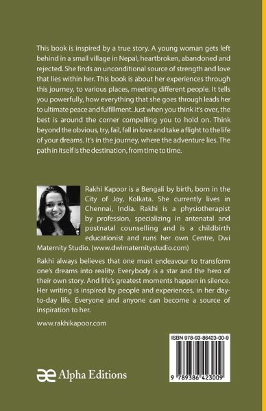 This book is inspired by a true story. A young woman gets left behind in a small village in Nepal, heartbroken, abandoned and rejected. She finds an unconditional source of strength and love that lies within her. This book is about her experiences through this journey, to various places, meeting different people. It tells you powerfully, how everything that she goes through leads her to ultimate peace and fulfillment. Just when you think it’s over, the best is around the corner compelling you to hold on. Think beyond the obvious, try, fail, fall in love and take a flight to the life of your dreams. It’s in the journey, where the adventure lies. The path in itself is the destination, from time to time.