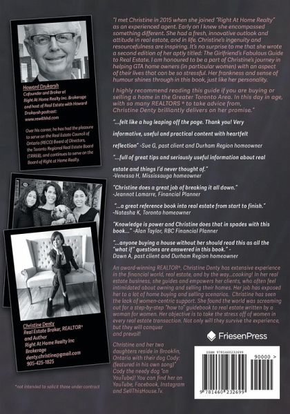 An award-winning REALTOR®, Christine Denty has extensive experience in the financial world, real estate, and by the way...cooking! In her real estate business, she guides and empowers her clients, who often feel intimidated about owning and selling their homes. Her job has exposed her to a lot of home buying and selling scenarios. Christine has seen the lack of women-centric support. She found the world was screaming out for a step-by-step "how to" guidebook to real estate written by a woman for women. Her objective is to take the stress off of women in every real estate transaction. Not only will they survive the experience, but they will conquer and prevail! Christine and her two daughters reside in Brooklin, Ontario with their dog Cody: (featured in his own song)" Cody the needy dog "on YouTube)! You can find her on YouTube, Facebook, Instagram and SellThisHouse.Tv. *not intended to solicit those under contract