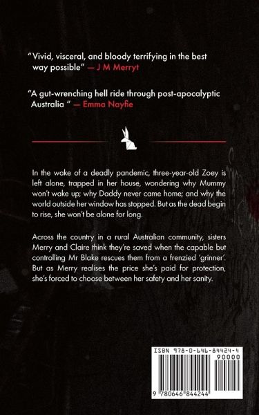 Winner of the 2021 Australian Shadows Award for Best Novel "The dead will rise and your heart will race - The Girls Left Behind is a gut-wrenching hell ride through post-apocalyptic rural Australia" - Emma Nayfie "Vivid, visceral, and bloody terrifying in the best way possible" - JM Merryt In the wake of a deadly pandemic, three-year-old Zoey is left alone, trapped in her house, wondering why Mummy won't wake up; why Daddy never came home; why the world outside her window has stopped. But as the dead begin to rise, she won't be alone for long. Across the country, in a rural Australian community, sisters Merry and Claire think they're saved when the capable, but controlling, Mr Blake rescues them from a frenzied 'grinner'. But as Merry discovers the price she's paid for protection, she's forced to choose between her safety and her sanity. TRIGGER WARNING: This book contains scenes of self-harm.