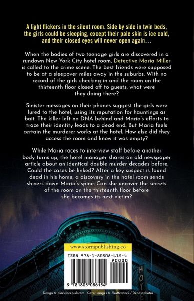 A light flickers in the silent room. Side by side in twin beds, the girls could be sleeping, except their pale skin is ice cold, and their closed eyes will never open again... When the bodies of two teenage girls are discovered in a rundown New York City hotel room, Detective Maria Miller is called to the crime scene. The best friends were supposed to be at a sleepover miles away in the suburbs. With no record of the girls checking in and the room on the thirteenth floor closed off to guests, what were they doing there? Sinister messages on their phones suggest the girls were lured to the hotel, using its reputation for hauntings as bait. The killer left no DNA behind and Maria's efforts to trace their identity leads to a dead end. But Maria feels certain the murderer works at the hotel. How else did they access the room and know it was empty? While Maria races to interview staff before another body turns up, the hotel manager shares an old newspaper article about an identical double murder decades before. Could the cases be linked? After a key suspect is found dead in his home, a discovery in the hotel room sends shivers down Maria's spine. Can she uncover the secrets of the room on the thirteenth floor before she becomes its next victim? Perfect for fans of Karin Slaughter, Mary Stone and A. J. Rivers, The Girls on Floor 13 will have you racing through the pages and sleeping with the lights on.