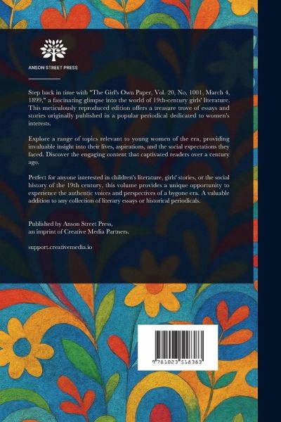 Step back in time with "The Girl's Own Paper, Vol. 20, No. 1001, March 4, 1899," a fascinating glimpse into the world of 19th-century girls' literature. This meticulously reproduced edition offers a treasure trove of essays and stories originally published in a popular periodical dedicated to women's interests. Explore a range of topics relevant to young women of the era, providing invaluable insight into their lives, aspirations, and the social expectations they faced. Discover the engaging content that captivated readers over a century ago. Perfect for anyone interested in children's literature, girls' stories, or the social history of the 19th century, this volume provides a unique opportunity to experience the authentic voices and perspectives of a bygone era. A valuable addition to any collection of literary essays or historical periodicals. This work has been selected by scholars as being culturally important, and is part of the knowledge base of civilization as we know it. This work is in the public domain in the United States of America, and possibly other nations. Within the United States, you may freely copy and distribute this work, as no entity (individual or corporate) has a copyright on the body of the work. Scholars believe, and we concur, that this work is important enough to be preserved, reproduced, and made generally available to the public. We appreciate your support of the preservation process, and thank you for being an important part of keeping this knowledge alive and relevant.