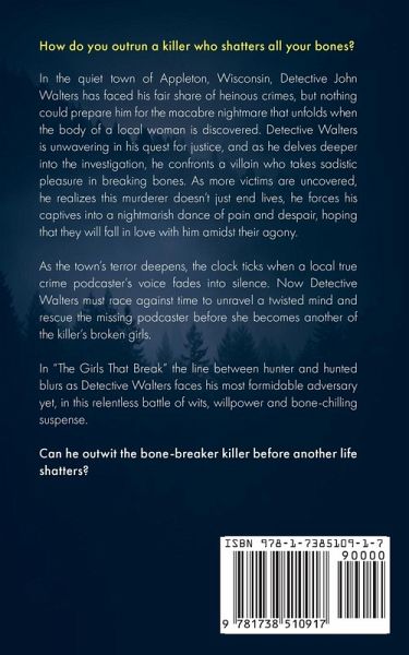 How do you outrun a killer who shatters all your bones? In the quiet town of Appleton, Wisconsin, Detective John Walters has faced his fair share of heinous crimes, but nothing could prepare him for thhe nightmare that unfolds when the body of a local woman is discovered. Detective Walters is unwavering in his quest for justice, and as he delves deeper into the investigation, he confronts a villain who takes sadistic pleasure in breaking bones. As more victims are uncovered, he realizes this murderer doesn't just end lives, he forces his captives into a nightmarish dance of pain and despair, hoping that they will fall in love with him amidst their agony. As the town's terror deepens, the clock ticks when a local true crime podcaster's voice fades into silence. Now Detective Walters must race against time to unravel a twisted mind and rescue the missing podcaster before she becomes another of the killer's broken girls. In "The Girls That Break" the line between hunter and hunted blurs as Detective Walters faces his most formidable adversary yet, in this relentless battle of wits, willpower and bone-chilling suspense. Can he outwit the bone-breaker killer before another life shatters?