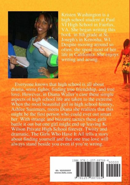 Everyone knows that high school is all about drama, some fights, finding true friendship, and true love. However, in Diana Waller's case these simple aspects of high school life are taken to the extreme. When the most beautiful girl in high school history, Ashlee Summers, meets Diana she realizes that this might be the first person who could ever out smart her. With strange and bizzarre tactics these girls battle it out but one girl might end up leaving K. Wilson Private High School forever. Twisty and dramatic, The Girls Who Have It All tells a story about finding yourself and that one true love will always stand beside you even if you're wrong.