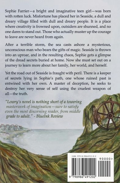 Sophie Farrier -- a bright and imaginative teen girl -- was born with rotten luck. Misfortune has placed her in Seaside, a dull and dreary village filled with dull and dreary people. It is a place where creativity is frowned upon, outsiders are shunned, and no one dares to stand out. Those who actually muster up the courage to leave are never heard from again. After a terrible storm, the sea casts ashore a mysterious, unconscious man who bears the gifts of magic. Seaside is thrown into an uproar, and in the resulting chaos, Sophie gets a glimpse of the dread secrets buried at home. Now she must set out on a journey to learn more about her family, her world, and herself. Yet the road out of Seaside is fraught with peril. There is a keeper of secrets lying in Sophie's path, one whose ruined past is entwined wither her own. A master of deception, he seeks to destroy her very sense of self using the cruelest weapon of all -- the truth.