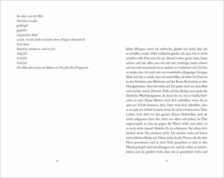 Bella ist sehr gelungen. Obwohl sie kein extrovertierter Charakter ist, ist sie sofort greifbar. Sie fühlt sich von ihren Eltern vernachlässigt, und als ihre Oma stirbt, der einzige Mensch, bei dem sie sie selbst sein konnte, bricht ihr letzter Halt weg. Und dann folgt eine Kettenreaktion. Unfähig, mit ihren Gefühlen umzugehen, verdrängt sie sie, mit allen Mitteln.