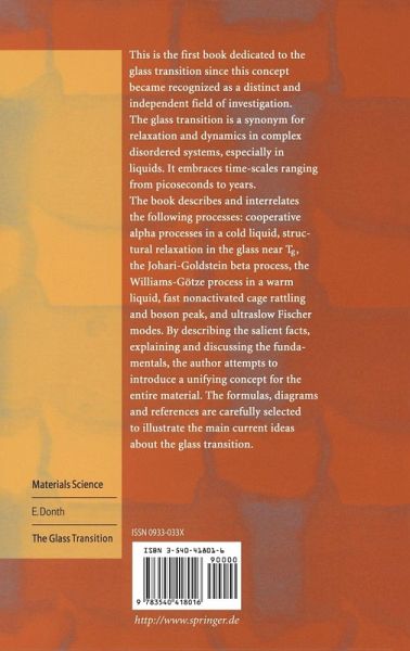 From the reviews of the first edition: "A welcome addition to the literature on a subject that is currently attracting a very heavy research interest... the author means the entire process of viscous slowdown and vitrification... he may well be the best-read author in this field. I found information that was new and interesting to me in nearly every section. There seems to be no element of the subject on which Donth has not read widely and deeply. [His] use of figures, backed up by appropriate text, can be an effective way of conveying a lot of information about (and insight into) the system behavior... This book is an excellent choice of reading material for someone newly entering the field, who wants to be made aware of its elements. It also provides much food for thought for the experts." PHYSICS TODAY (Dec. 2002) "The glass transition is one of the most challenging tasks waiting for its explanation and understanding. ... This excellent book is simply a must not only for scientists working in the glass transition, but also important for material scientists, engineers. Its concept also makes the book to stand as a textbook for advanced or postgraduate students. Extensive referencing, general scope of the book ... make the book readable as a bestseller." (Ondrej Gedeon, Ceramics, Vol. 46 (1), 2002)