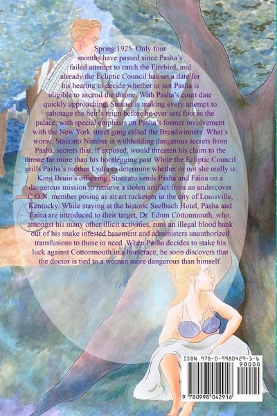 Spring 1925. Only four months have passed since Pasha's failed attempt to catch the Firebird, and already the Ecliptic Council has set a date for his hearing to decide whether or not Pasha is eligible to ascend the throne. With Pasha's court date quickly approaching, Samael is making every attempt to sabotage the heir's reign before he ever sets foot in the palace, with special emphasis on Pasha's former involvement with the New York street gang called the Breadwinners. What's worse, Staccato Nimbus is withholding dangerous secrets from Pasha, secrets that, if exposed, would threaten his claim to the throne far more than his bootlegging past.While the Ecliptic Council grills Pasha's mother Lydia to determine whether or not she really is King Bruin's offspring, Staccato sends Pasha and Faina on a dangerous mission to retrieve a stolen artifact from an undercover C.O.N. member posing as an art racketeer in the city of Louisville, Kentucky. While staying at the historic Seelbach Hotel, Pasha and Faina are introduced to their target, Dr. Edom Cottonmouth, who, amongst his many other illicit activities, runs an illegal blood bank out of his snake infested basement and administers unauthorized transfusions to those in need. When Pasha decides to stake his luck against Cottonmouth in a horserace, he soon discovers that the doctor is tied to a woman more dangerous than himself.