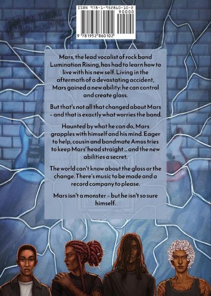 Mars, the lead vocalist of rock band Lumination Rising, has had to learn how to live with his new self. Living in the aftermath of a devastating accident, Mars gained a new ability: he can control and create glass. But that's not all that changed about Mars - and that is exactly what worries the band. Haunted by what he can do, Mars grapples with himself and his mind. Eager to help, cousin and bandmate Amos tries to keep Mars' head straight ... and the new abilities a secret. The world can't know about the glass or the change. There's music to be made and a record company to please. Mars isn't a monster - but he isn't so sure himself.